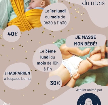 Pour moi, chaque moment est précieux. Tu trouveras des accompagnements personnalisés, des ateliers et des soins dans des confettis de douceur.